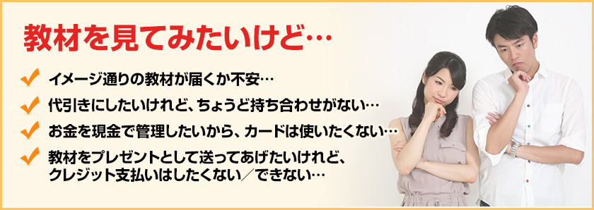 教材の到着をご確認されてからお支払いができますので、「本当にきちんと教材が届くのか不安…」とお考えでしたら、是非、この『コンビニ後払いサービス』をご利用下さい。