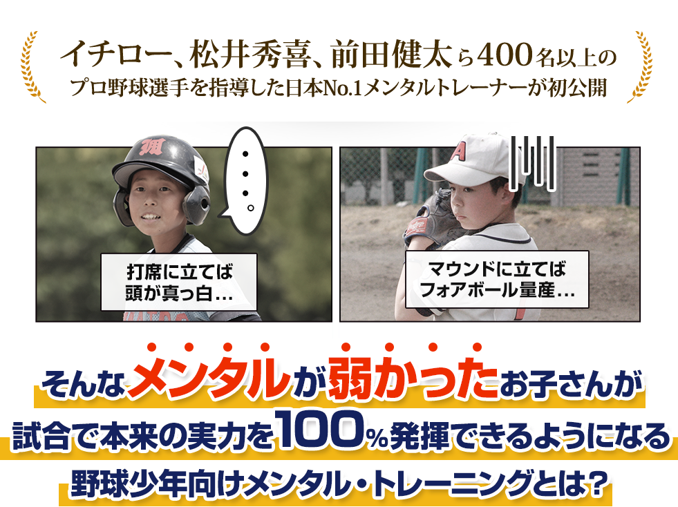 このページではあなたに、400名以上のプロ野球選手が実践した『メンタル・コントロール』と『メンタル・トレーニング』の方法についてお伝えいたします。