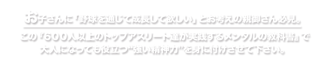 こういったことから、『メンタルのトレーニングは、野球だけでなくこれからの人生に間違いなく必要なものだ』と断言できます。